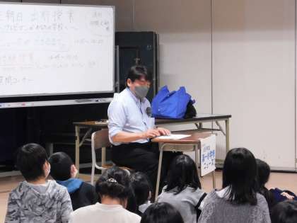 5年生が社会科の授業として、テレビ朝日の出前授業を受けました。当日はテレビ朝日の社員の方が講師として来校され、「ニュースができるまで」の話と、実際に疑似体験をさせていただきました。