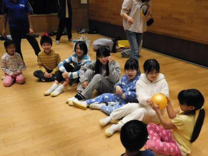 夕食後はホールでレクリェーションです。担当の子が進行してくれます。