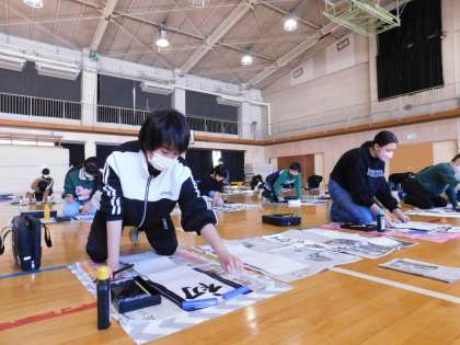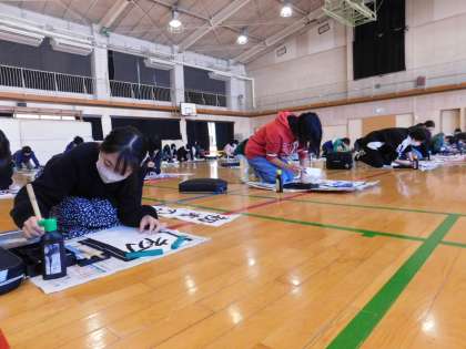 冬休みに書いた書初めを、講師の先生が事前に朱を入れて直してくれました。