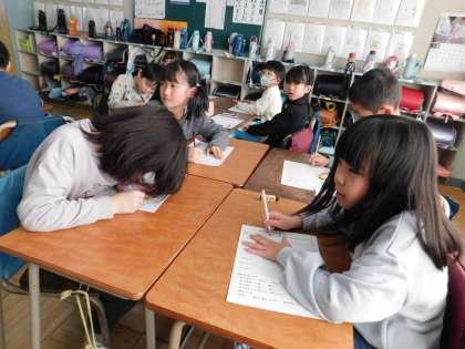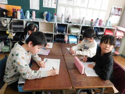 3組は国語の「かさこじぞう」の学習をしていました。