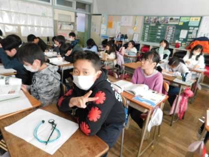 5年2組の授業風景です。社会科で「情報通信」について学習していました。