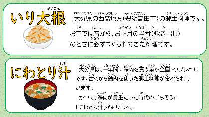各地の郷土料理をたべて日本の食文化を受け継ぎつないでいきましょう。