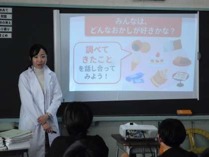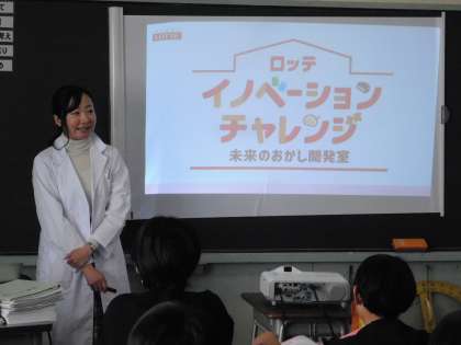 お菓子の会社として有名なロッテさんからゲストティーチャーに来ていただき、商品開発を通した出前授業をして頂きました。