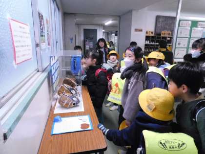 1月20日(土)、3学期の学校公開を実施しました。中央昇降口に設置した「大谷選手からのグローブ」です。