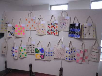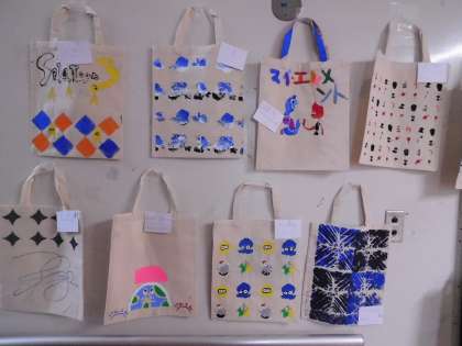 図工室横には、4年生が作った手提げ袋が飾ってありました。