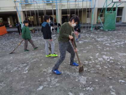 集めた氷を砕いてくれています。