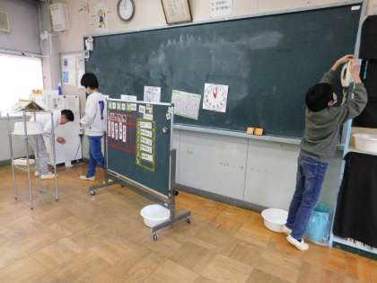 いろいろな場所に隠された、20個の手裏剣を探します。16個も見つけられた1年生チームもいました。