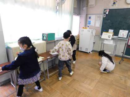 写真は隠している担当の子と、探している1年生です。