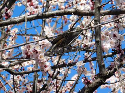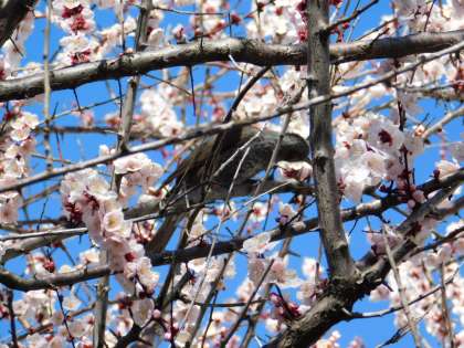 ヒヨドリ(?)も花の蜜を吸いに枝にとまっていました。