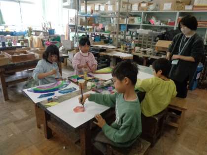 1年生は普段は教室での図工ですが、今日は図工の先生も入り、図工室での授業となりました。