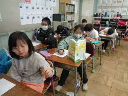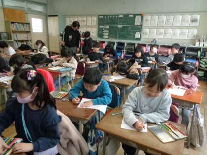2年2組は国語で、感謝を伝える手紙を書いていました。