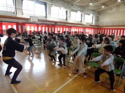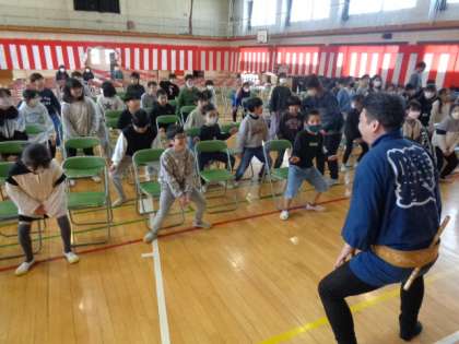 続いて、踊りを教えていただきました。ひょっとこの男踊りと、おかめの女踊りを教えていただきました。