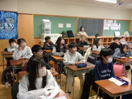 英語の授業は2学級に分かれて、行われました。