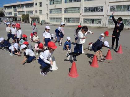 2組は、立ち幅跳びをしていました。
