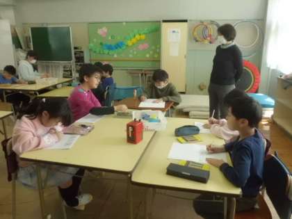 この日は、いつものような絵日記と、今年度作品をれる紙バッグを作りました。