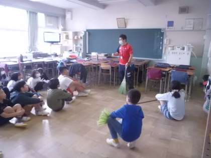 6年2組です。掃除の仕方について、みんなで共通理解していました。