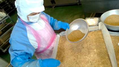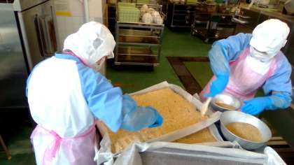 たまご・豆腐・ひき肉を混ぜて型に流しこみ、
