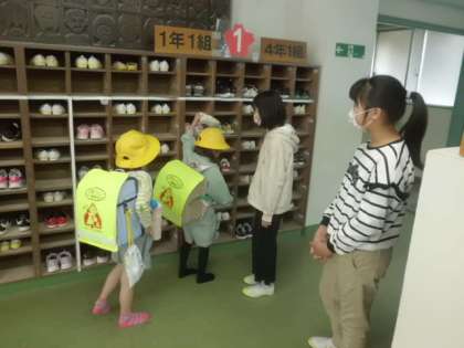 学校が始まって2週目に入りました。今週も6年生が1年生のお世話をしてくれています。