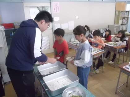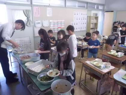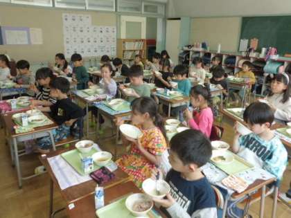 2年生の給食ものぞいてみました。さすが2年生、食欲も旺盛です。2組は食缶が空になっていました。