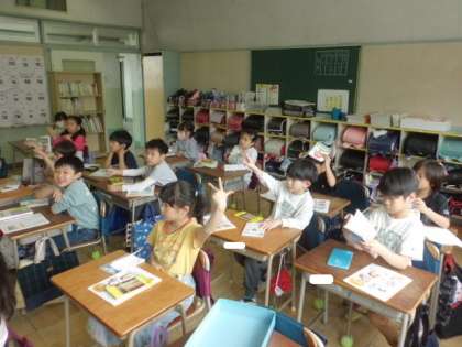 2年3組は音楽の講師の先生が来てくれていました。手話を交えて歌っていました。