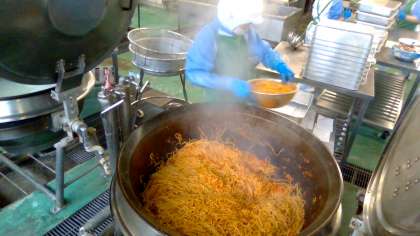 はちナポの上にはケチャップで炒めた刻みたまねぎが
