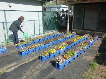 天気が続くと、ビオラもクタッとなっていますが、お水をあげるとピンと元気になってくれます。サポーターの先生に感謝です。