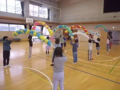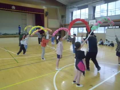 26日(金)に離任式を行います。転出された職員との再会のひと時です。アーチを持つ子や、お手紙を読む子たちが、練習していました。