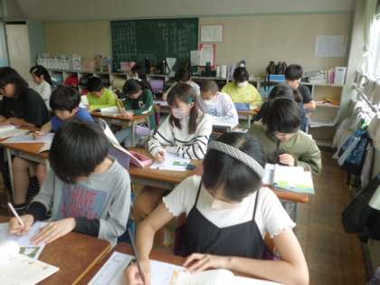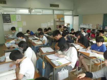 6年2組です。テストの真っ最中でした。