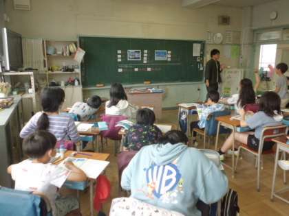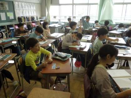 5年1組です。社会科の学習中でした。