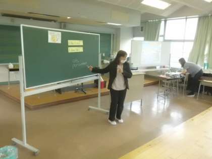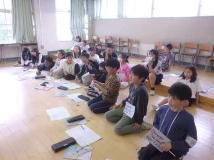 今年度初めて、ALTの先生が入っての外国語活動授業でした。
