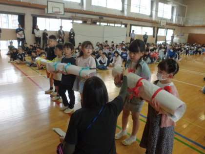 2年生から1年生にプレゼントをしました。