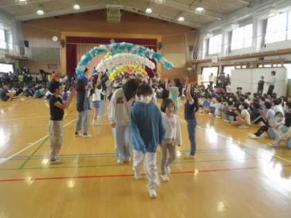 運営委員会の子の合図で、6年生と一緒に、1年生が退場します。