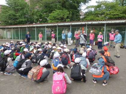 5月14日(火)、4年生が川の学習に行ってきました。前日の雨で、延期かと思われましたが、朝の時点で川の状態を確認して、実施できることになりました。良かったです。