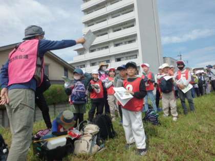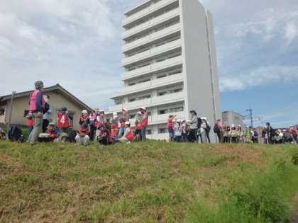 まずは川全体を眺め、浅川の環境について、グループごとに講師の先生はついて、説明してくれています。
