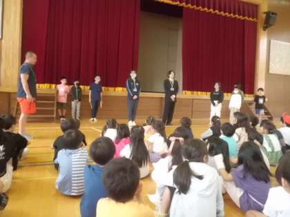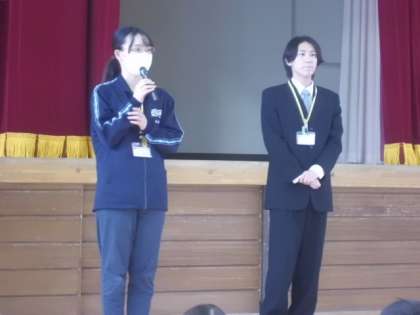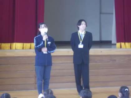 月曜日から始まった教育実習です。今朝は実習生の紹介を全校児童にしました。
