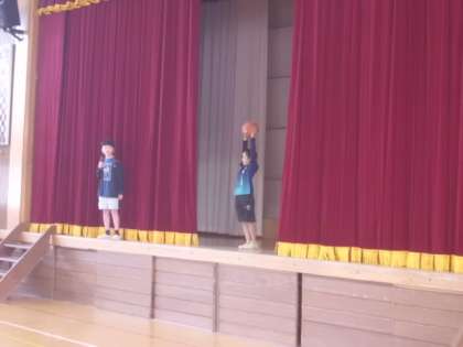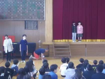 今朝は体育館で、実習生の紹介の後、ゲーム集会をしました。「これは何でしょうゲーム」です。