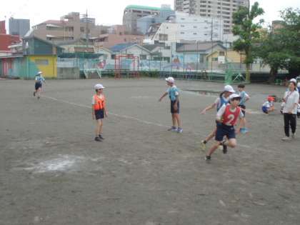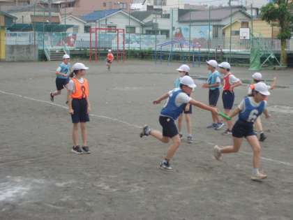 6年1組がリレーをしていました。
