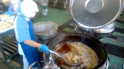 甘辛いみそだれをかけていただきます。