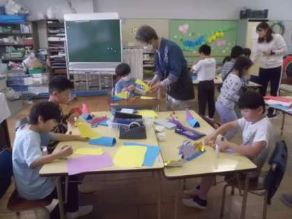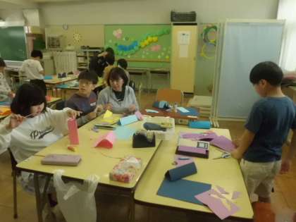 昨日の授業です。わかば学級の図工の時間です。
