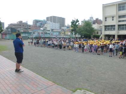 久しぶりの全校朝会です。合唱団の子が全国大会に出場することになった報告をしました。みんなで拍手をして応援しました。