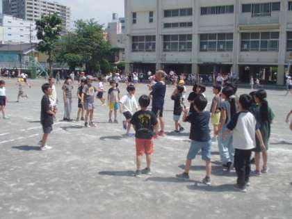 昼休みの風景です。4年1組が、みんなで大繩をしていました。