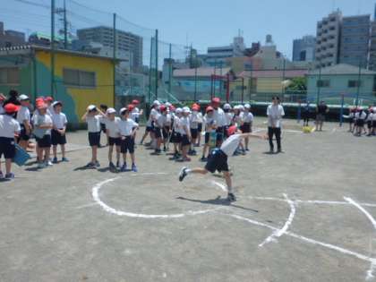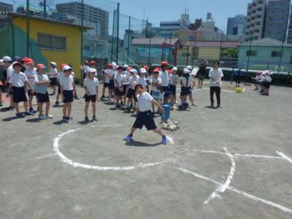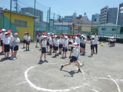 4年生は楽しそうに取り組んでいました。20m以上投げる子もいました。