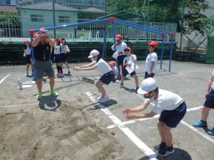 砂場では、「立ち幅跳び」に挑戦中です。