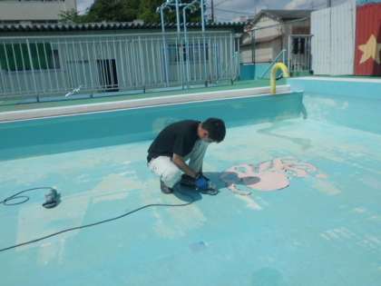 来週からプールの時間が始まります。市職員の方が来て、底面の修理を昨日も行ってくれました。すぐに対応してくれてありがたいです。