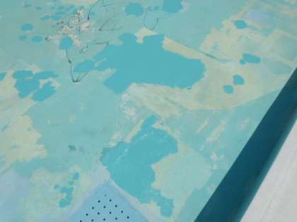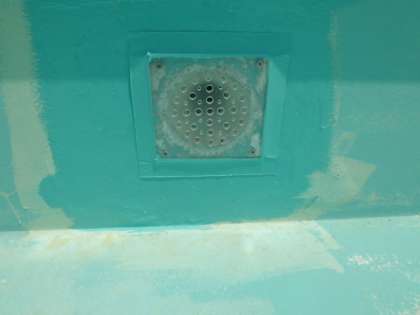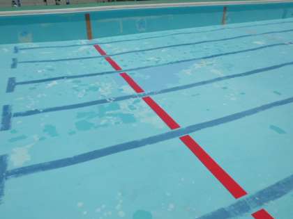 側面の給水口や底面もきれいに補修されました。合わせて、20mラインもきれいに塗り直してくれました。ありがとうございました