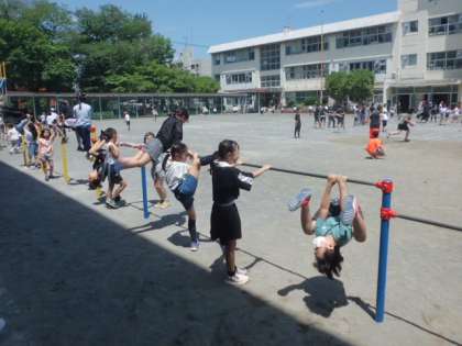 鉄棒も人気の場所です。いろいろな技を見せてくれました。