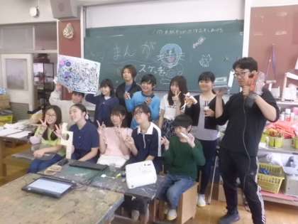 先日、6年生が卒業アルバム用の「クラブ写真」を撮影しました。写真は校庭クラブとまんが・スケッチクラブです。