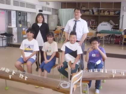 写真は、合奏クラブとバドミントンクラブです。