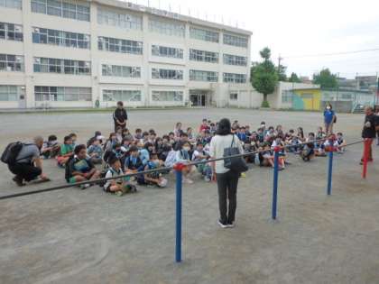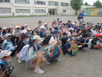 4年生が「館クリーンセンター」に社会科見学に出発します。教育実習に来てくれていた学生さんも、引率補助で参加してくれました。