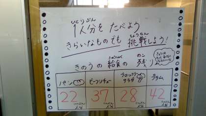給食室の前を通ったこどもたちが少しでも食に興味をもち、楽しめることを